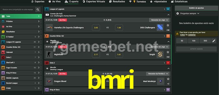 O bmri oferece uma grande seleção de opções de apostas em e-sports com probabilidades competitivas